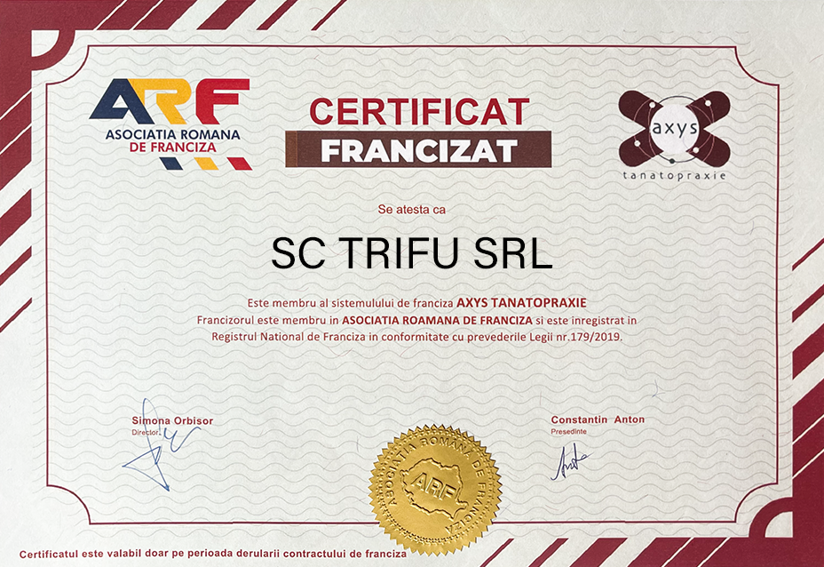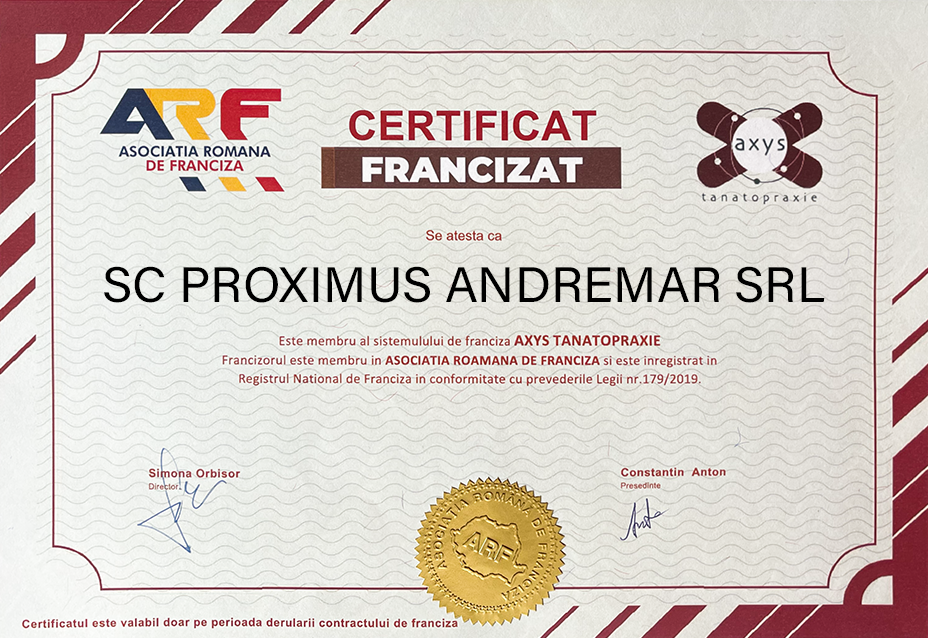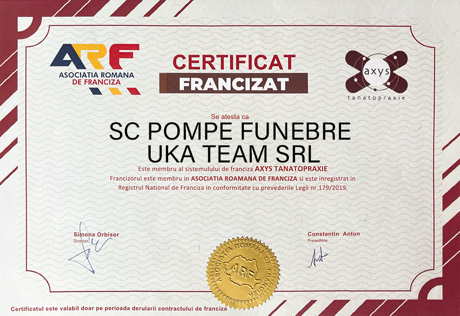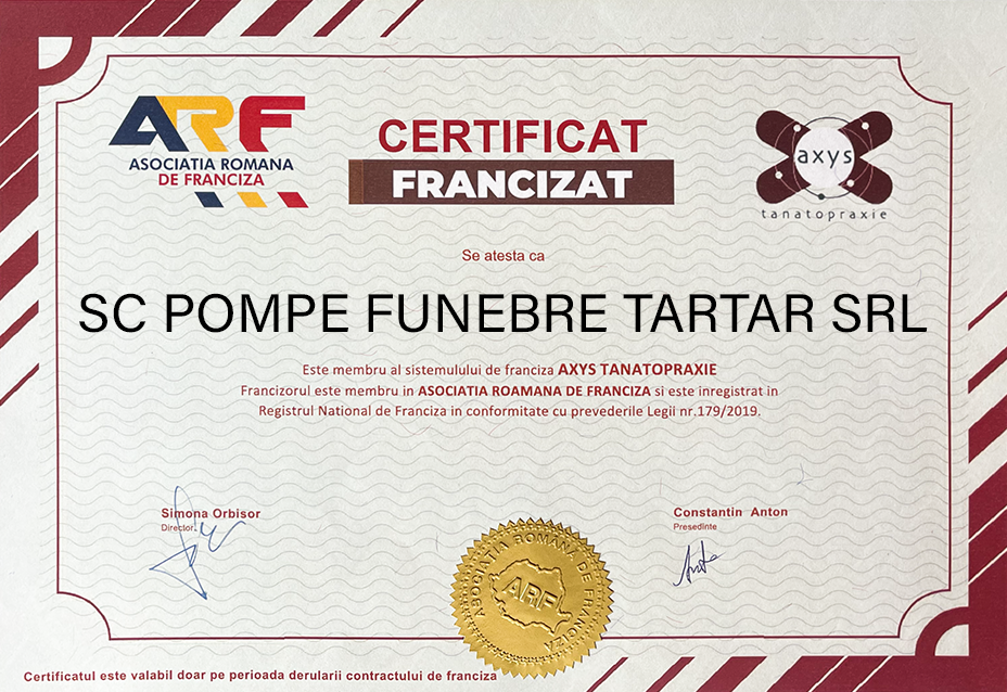Membrii rețelei de franciză AXYS Tanatopraxie sunt parteneri de încredere care au susținut de-a lungul anilor dezvoltarea tanatopraxiei în România alături de AXYS. Prin calitatea serviciilor oferite , au satisfăcut cerințele clienților, consolidându-și poziția pe piață.